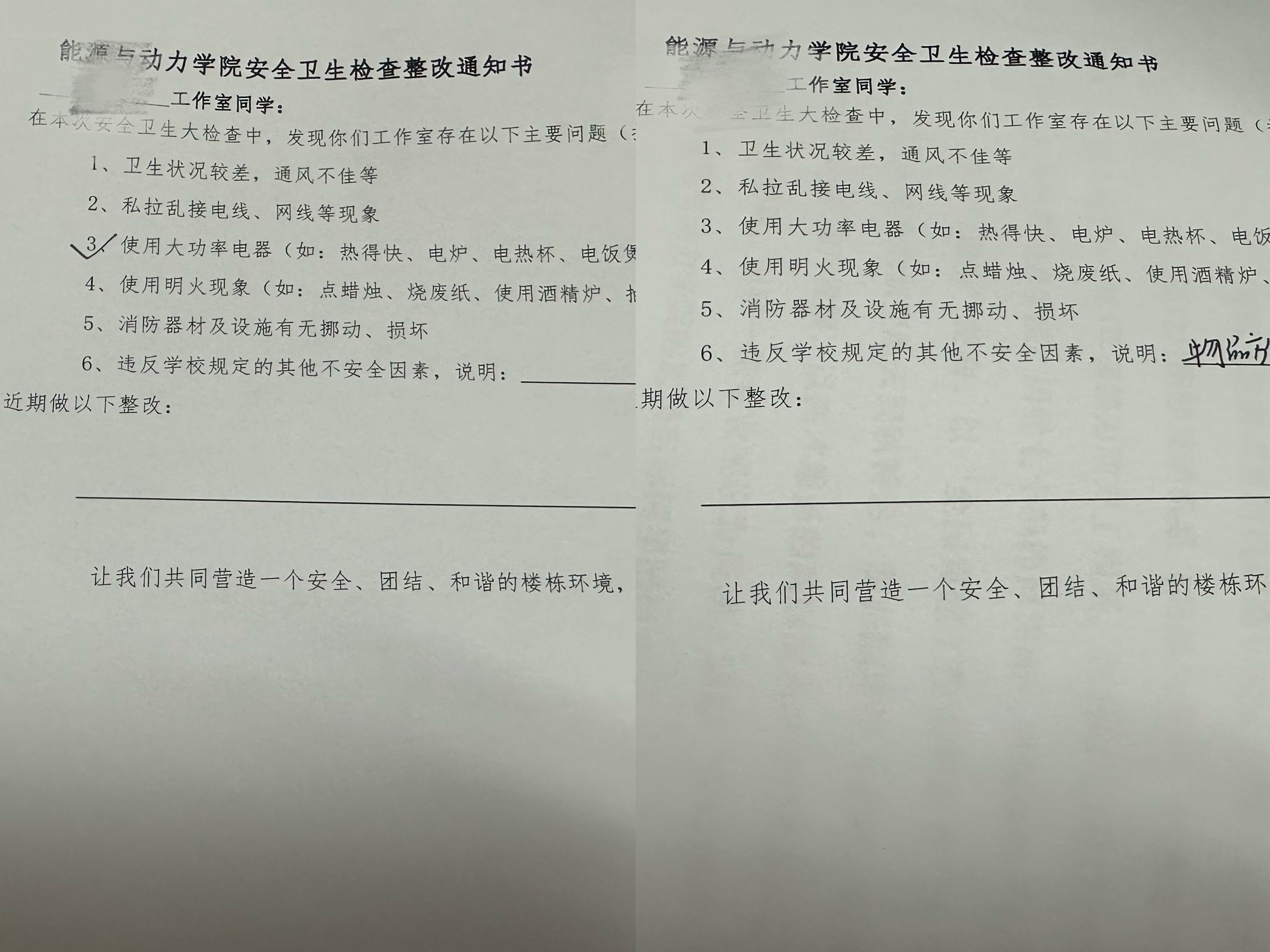 检查过程中,各小组坚持“不留死角、不留隐患”的原则,对可能存在的风险点进行了逐一排查,并就发现的问题现场与相关责任人沟通反馈,对存在安全隐患的部位当场下发整改通知单,明确整改要求与时限。同时,检查组向师生强调了安全规范的重要性,提醒大家在离校前务必做到关闭电源、锁好门窗,切实强化安全与责任意识。