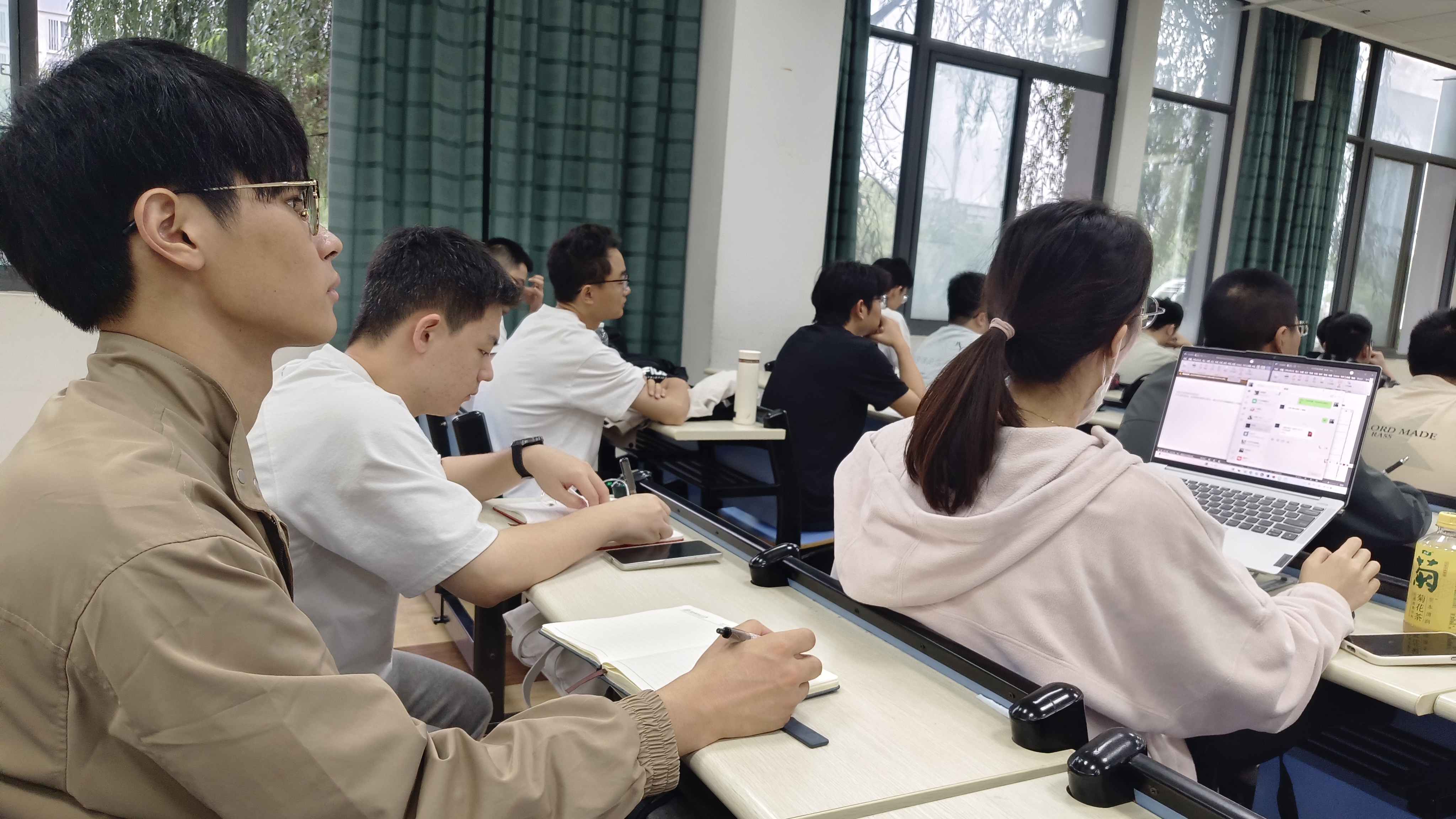 开放课堂过程中,周标主讲无阻尼系统的自由振动-二自由度系统内容,针对无阻尼二自由度振动系统模态特性分析数学公式推导复杂的难题,他在课堂教学过程中注重物理直觉、数学美感与可视化动态图示的深度融合,引导学生从单自由度振动系统的直观思维顺利过渡到二自由度振动系统的抽象思维,并深刻理解模态(振型) 这一核心概念的物理与数学内涵。课程目标要求明确,讲解知识点清晰,课件中用了大量动图,形象生动,便于概念、公式理解,引导学生思考。他声音洪亮,语速适中,启发、鼓励性的语言深深吸引了在场师生,参加观摩的老师表示从周老师的课堂受益匪浅。