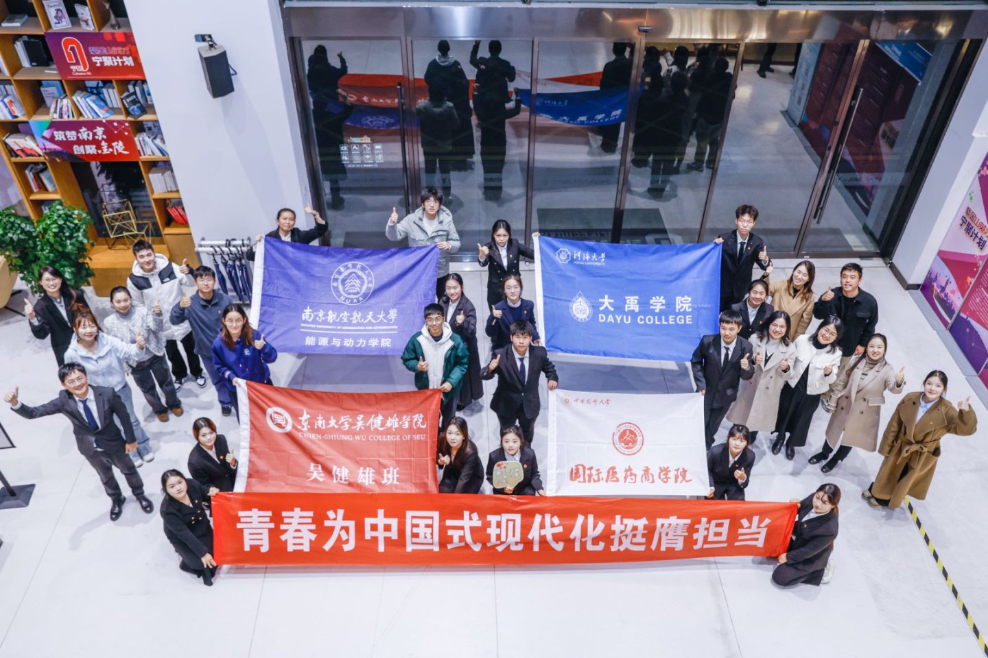 为持续强化思想政治引领,筑牢青年团结奋斗的思想根基,引领广大青年用青春力量为中国式现代化挺膺担当,11月26日,学院团委联动东南大学吴健雄学院、河海大学大学大禹学院、中国药科大学国际医药商学院团委举办“镜湖朗读者”之青春为中国式现代化挺膺担当主题团日活动风采展评。江宁团区委挂职副书记孙林、江宁团区委学少部部长陈蓉、江宁教育局团工委书记高原、东南大学吴健雄学院团委书记刘欢欢、河海大学大禹学院团委书记樊舒婕、中国药科大学国际医药商学院党委副书记赵瑾、国际医药商学院团委指导老师孙军及我院团委书记陈华华出席本次活动。