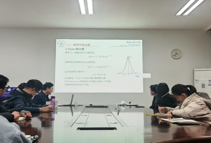 活动中,党支部副书记田杰同志领学《习近平关于加强党的作风建设论述摘编》与《“十五五”与2035中国》,结合典型案例,系统阐释了作风建设与党性修养的辩证关系,重点强调健全制度体系、强化监督机制对培育优良作风、夯实思想根基的保障作用。支部党员孙丝路同志立足专业领域,围绕湍流尺度解析,深入讲解不同湍流模型的原理与应用,突出科研工作中“知其然,亦知其所以然”的实践要求。