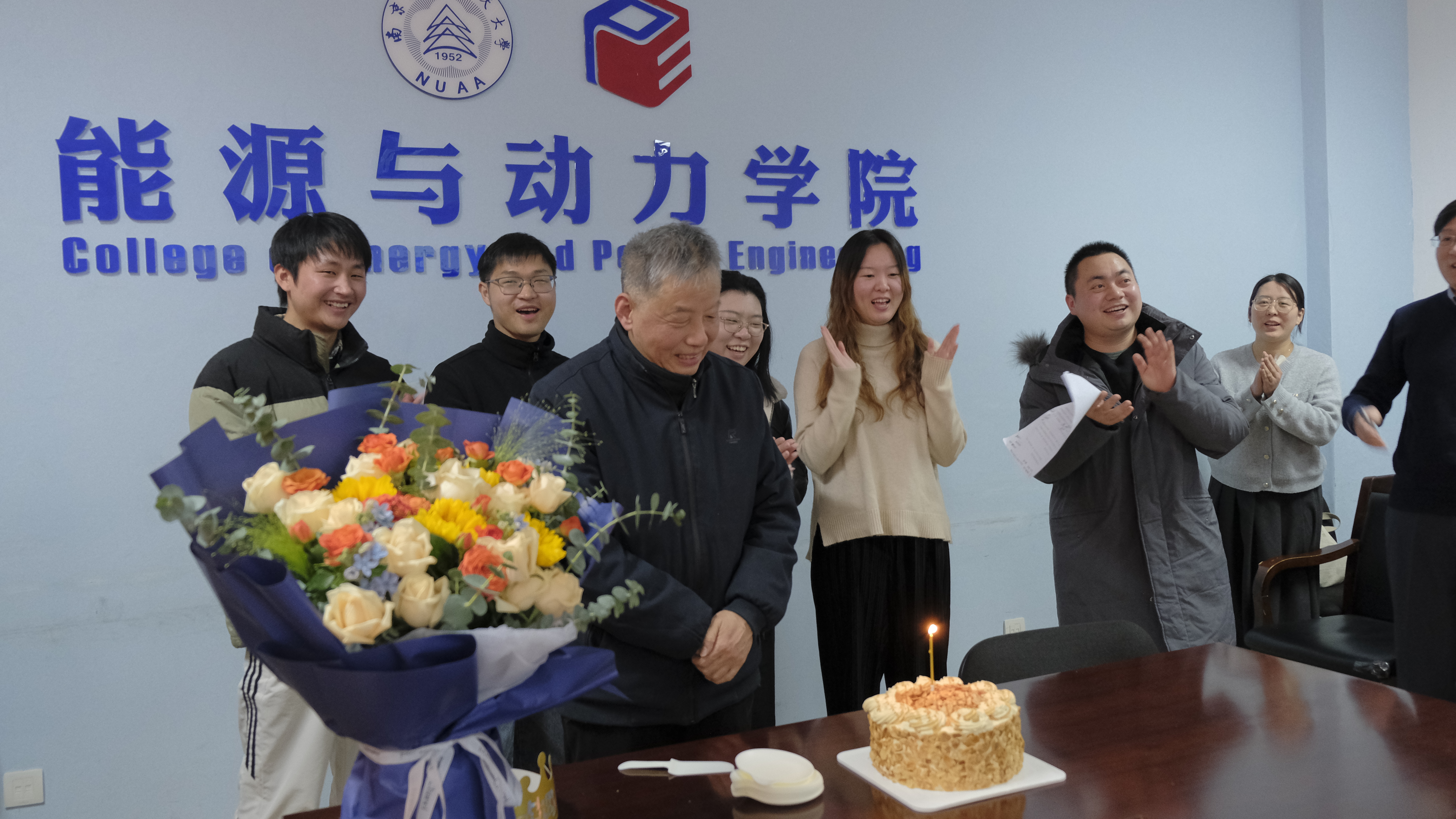 仪式上,许静与谭慧俊共同为葛宁教授颁发荣休纪念牌,学生代表献上鲜花,将感恩与敬意融于每一份心意之中。葛宁教授向学院捐赠《航空燃气涡轮发动机原理》一书,并题写到“一本书、一辈子,201传家宝!”,时值葛教授生日,学院特意准备了生日蛋糕,全体师生齐唱生日歌,温馨的氛围将活动推向高潮。