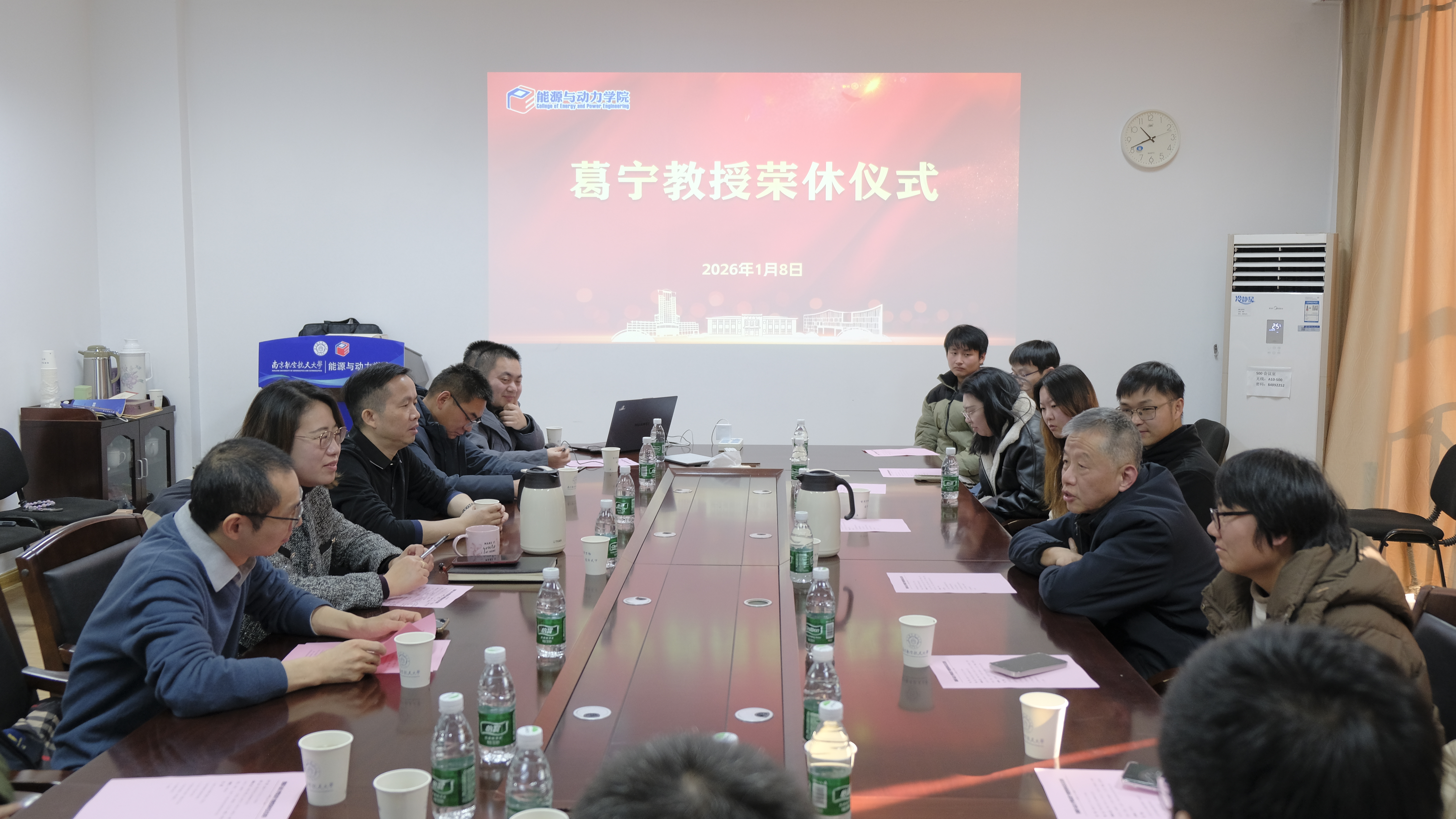 1月8日上午,能源与动力学院在明故宫校区为葛宁教授举办荣休仪式。学院党委书记许静、院长谭慧俊、党委副书记樊小杰,内流与叶轮机械系教师代表、党政办公室相关负责人及学生代表欢聚一堂。仪式由内流与叶轮机械系党支部书记黄河峡主持。