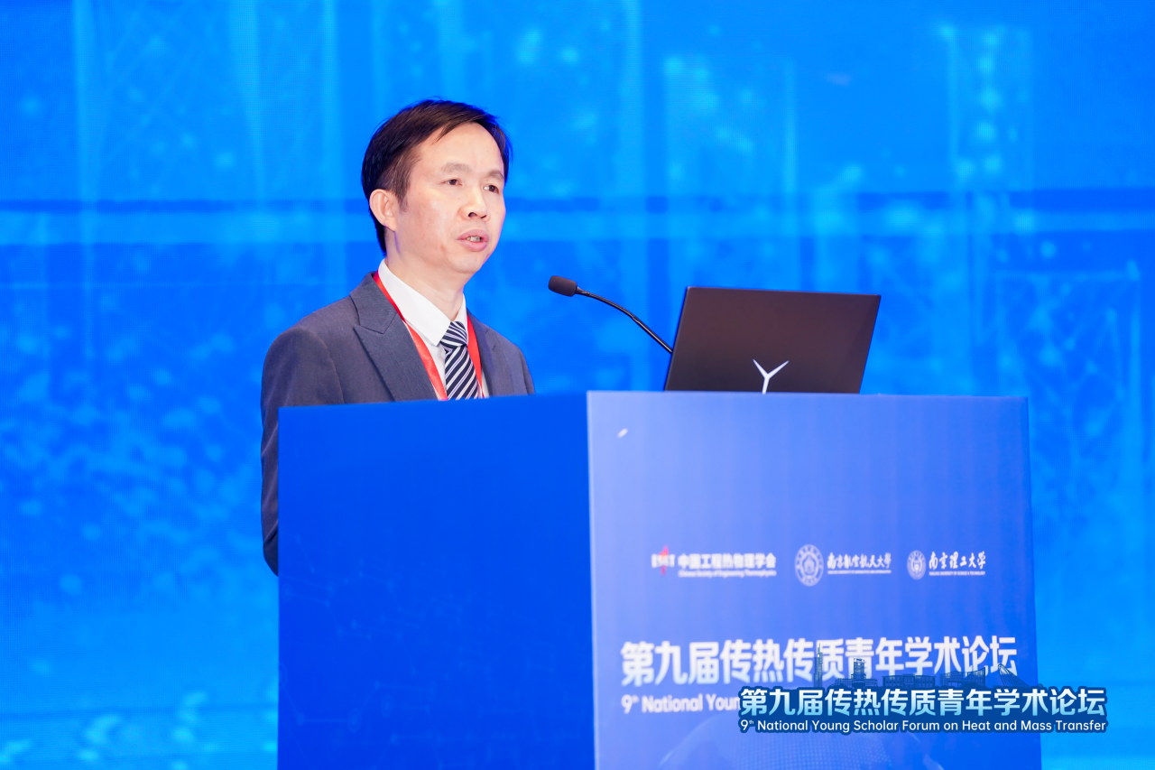 崔海涛代表承办单位致辞。他介绍了南京航空航天大学在航空宇航、工程热物理与传热传质领域的学科积淀与创新成果,强调学校始终以 “科技报国” 为理念,将传热传质学科作为重点建设方向。作为承办单位,南航将全力做好服务保障,以论坛为纽带,深化与全国同仁的交流合作,共同培育优秀青年人才,为能源绿色低碳转型与科技自立自强提供坚实支撑。